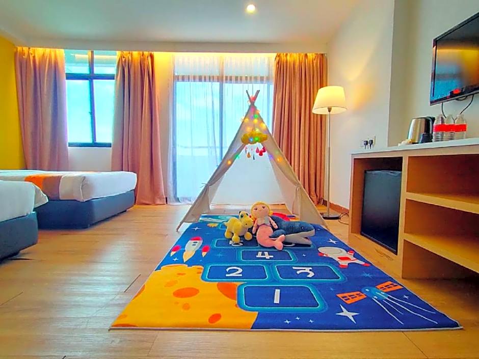 1 King Bed Deluxe Room is 355 square feet and includes a king-size bed 150-183 width plus desk, satellite tv , hairdryer, tea and coffee making facilities , and ironing set.